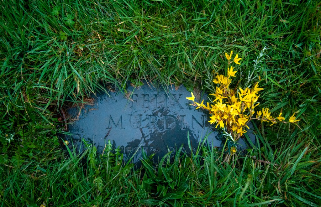 When I reach Felix, I am overjoyed to see a single snakes head fritillary growing in the middle of his grave. This gives me an inordinate amount of delight. My sister-in-law Kate gave me some of these flowers which I planted here a few years ago. The last few years there have been no sign of them. But now, one has reappeared. It gives me such comfort.