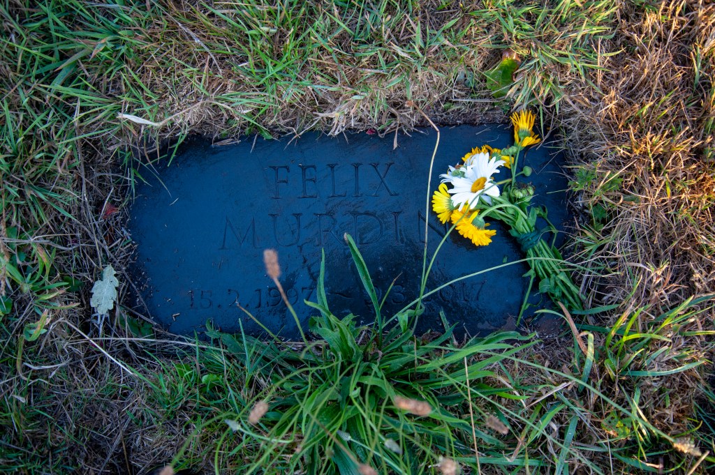 I have brought Felix a posy of flowers from my garden. Calendula and large daisies. The daisies are from my mother’s garden, my childhood garden, via a circuitous route. I remember them growing in profusion around the pond at home but never really thought anything of them. However, when my parents died, and the house was sold, my sister-in-law Kate, unbeknownst to me, took a clump of them and put them in her garden. Then unbeknownst to me, Kate’s mum Val took some for her garden. Then, a couple of years ago, after Felix died, a box arrived in the post for me. Val had sent a clump for me. I was deeply touched. Now they grow in my garden too, and it is lovely to bring them for Felix, to bring some of my mother’s love for him. She was there at the beginning of his life when he failed to thrive and she helped me so much during those difficult times. It is very hard with them both gone. A huge amount of love has disappeared from my life. But by bringing her daisies to Felix, I can feel them close to me again.