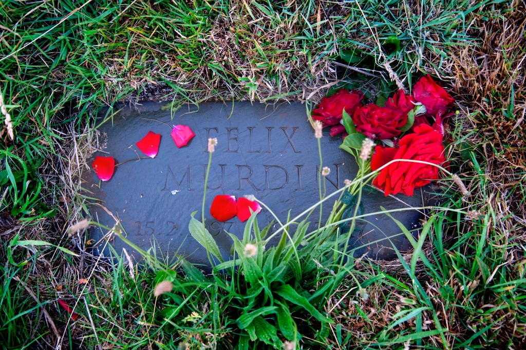 I wander over to Felix’s grave, which is being overtaken by grass and plantain. I kneel down and trim the grass back but leave the plantain which I rather like. I wash the headstone and then lay down a bunch of roses. I think of my darling Felix, gone these five years.